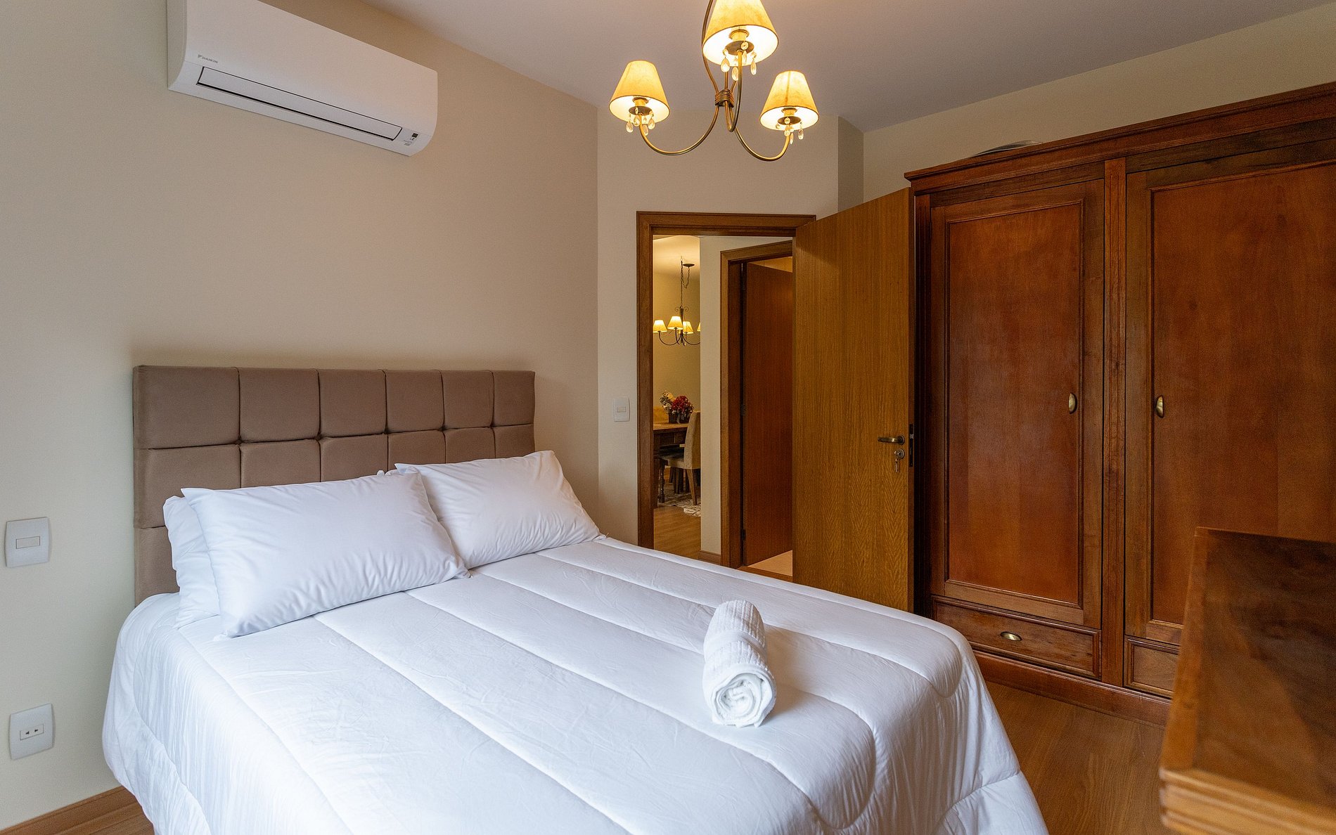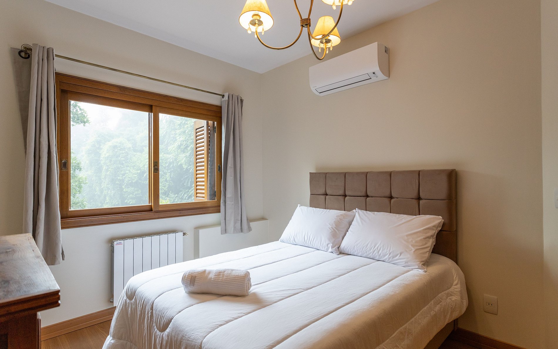 - 1 quarto com cama de casal + cama auxiliar extra (solteiro).