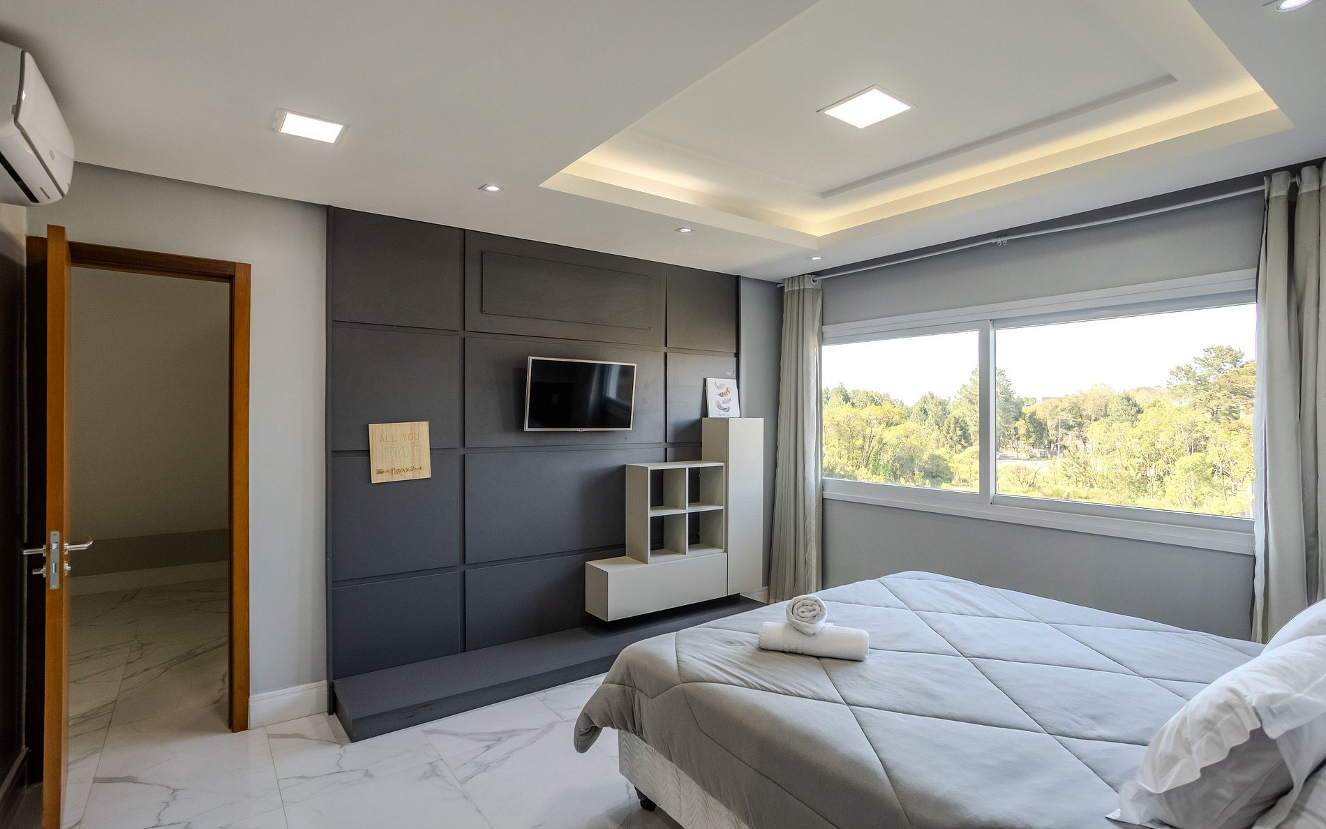 - 1 suíte com com closet + cama queen + cama extra auxiliar (solteiro) + ar condicionado, chuveiro elétrico, não possui tv.