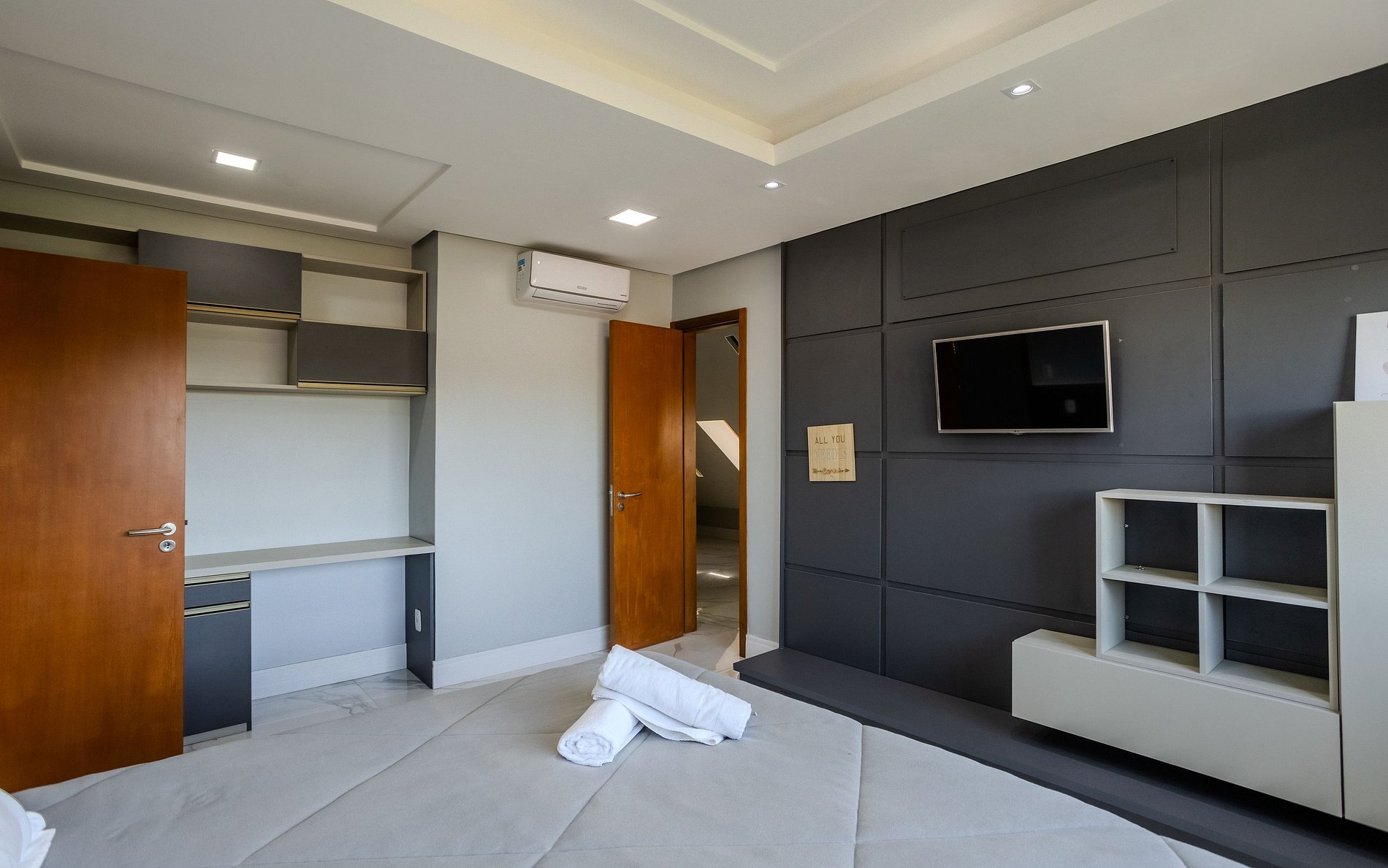 - 1 suíte + cama queen + ar condicionado de teto, chuveiro a gás, não possui tv.