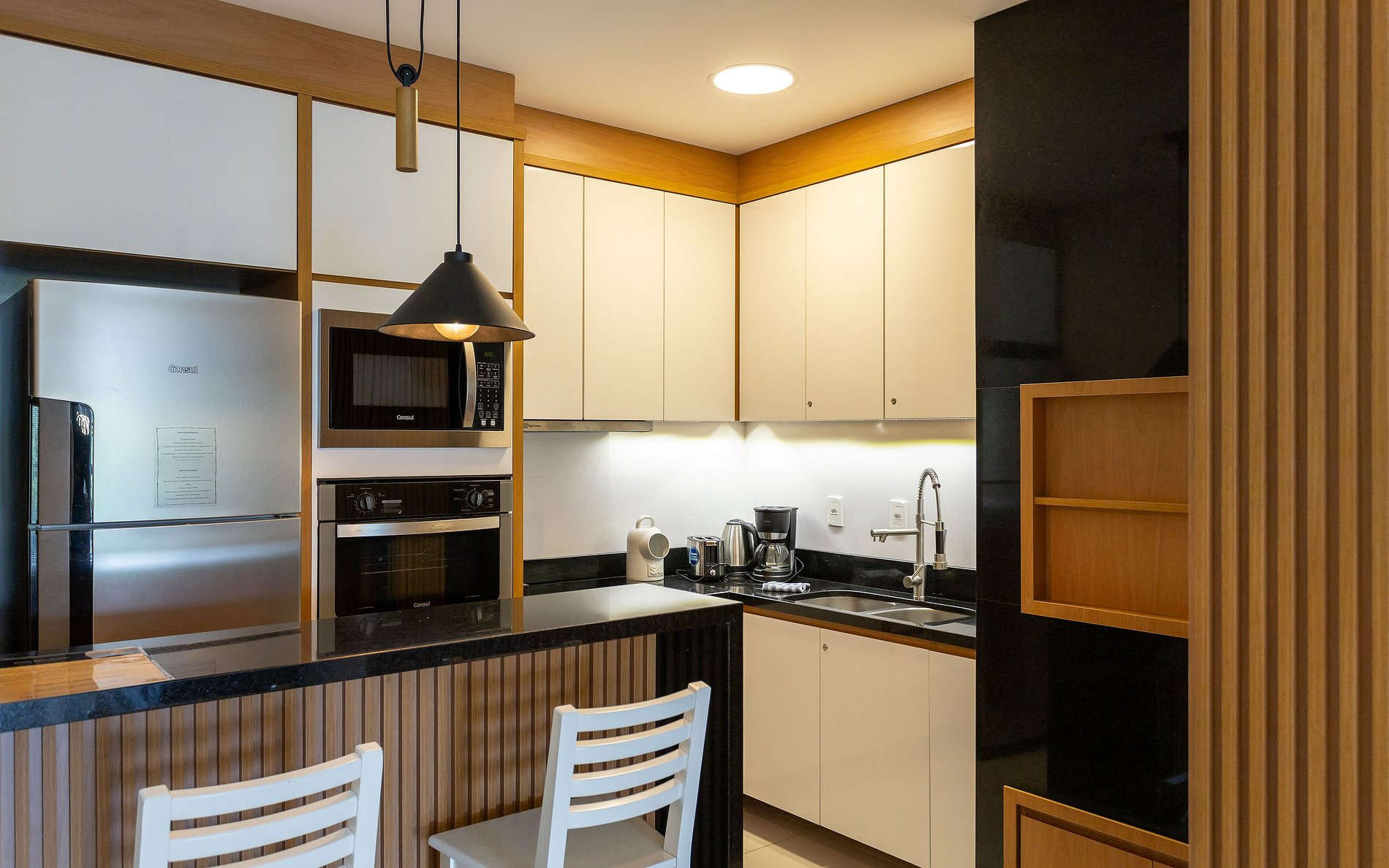 - Cozinha equipada com eletrodomésticos.