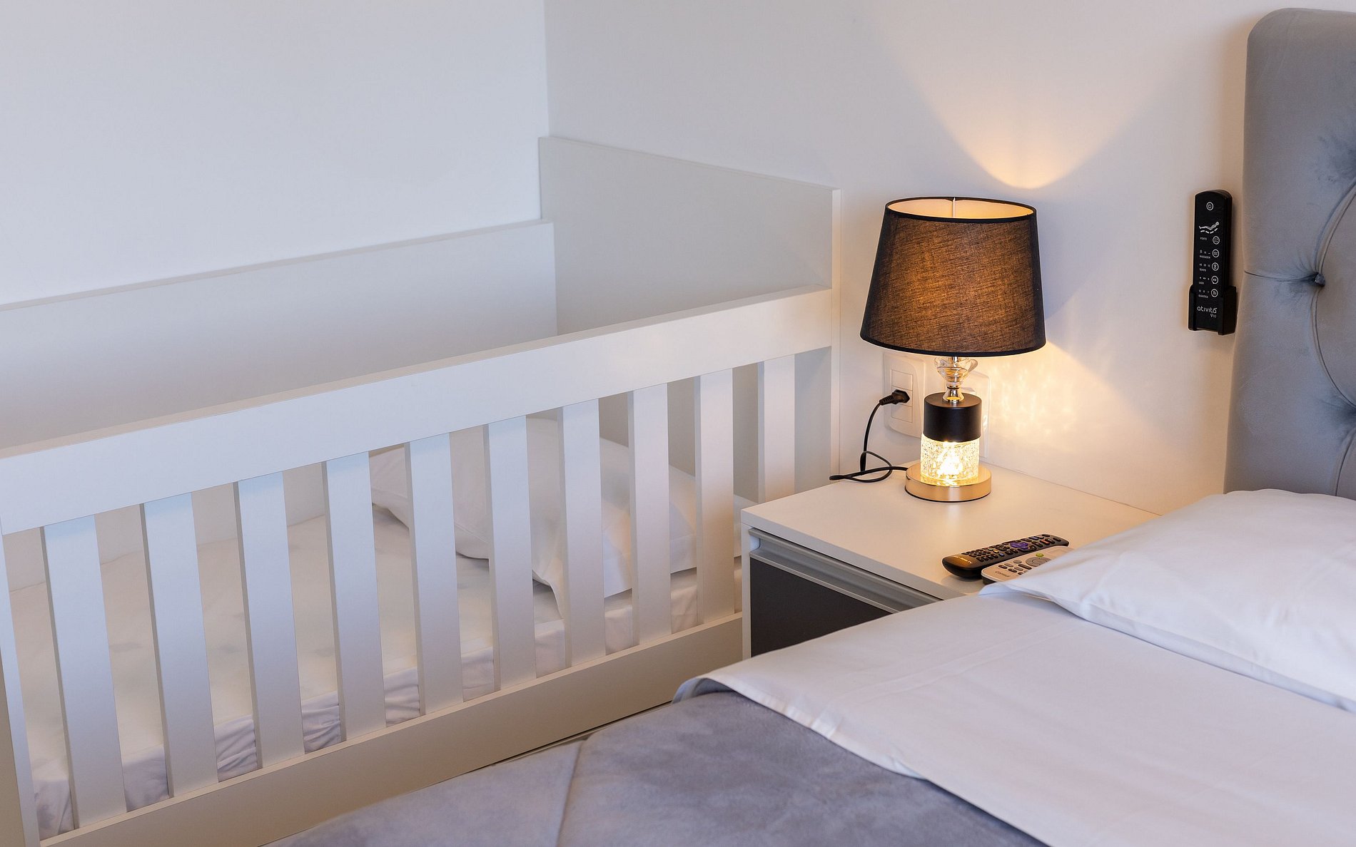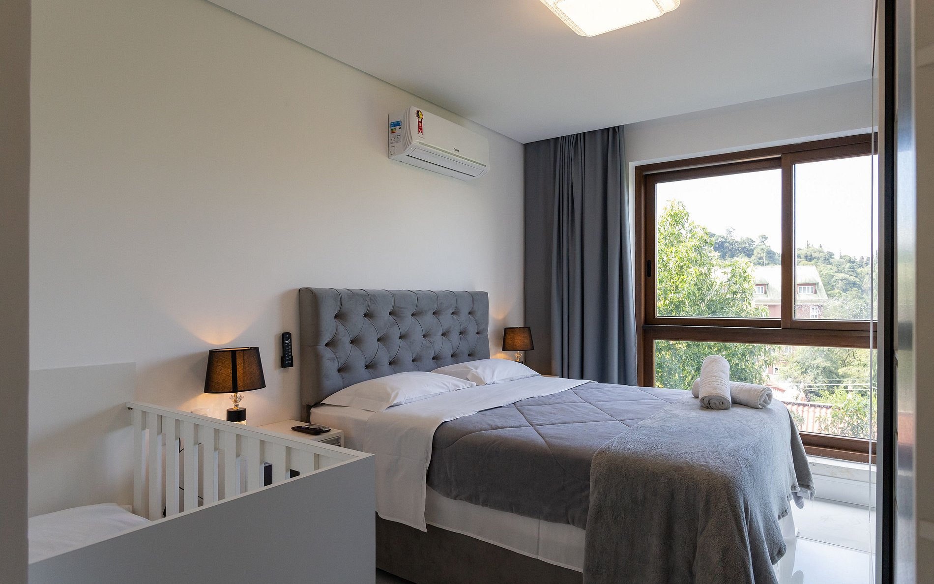 - 1 dormitório com cama queen massageador + berço.
