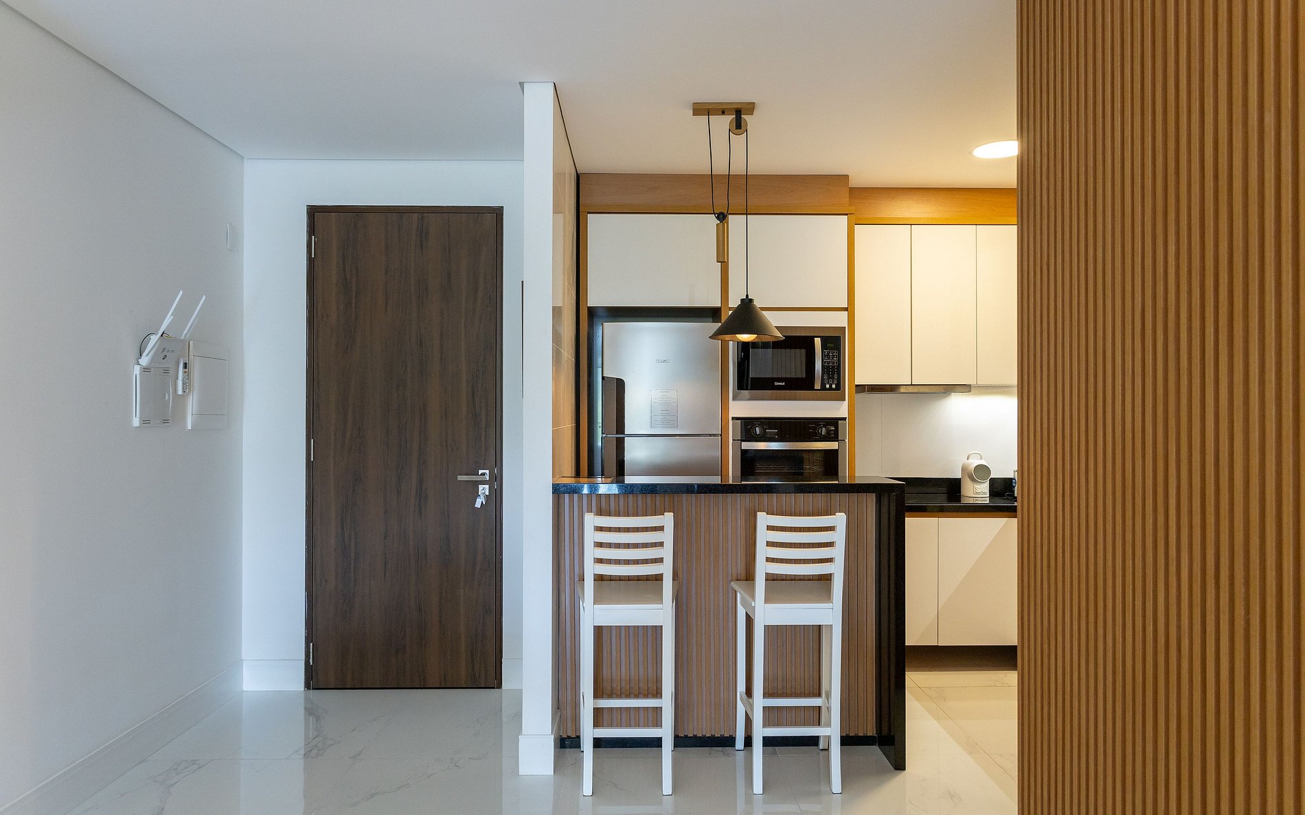 - Cozinha equipada com eletrodomésticos.