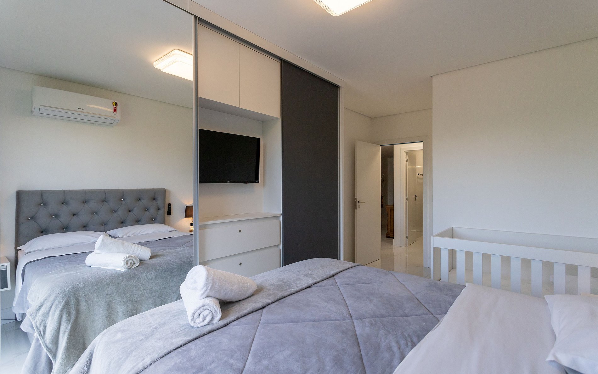 - 1 dormitório com cama queen massageador + berço.