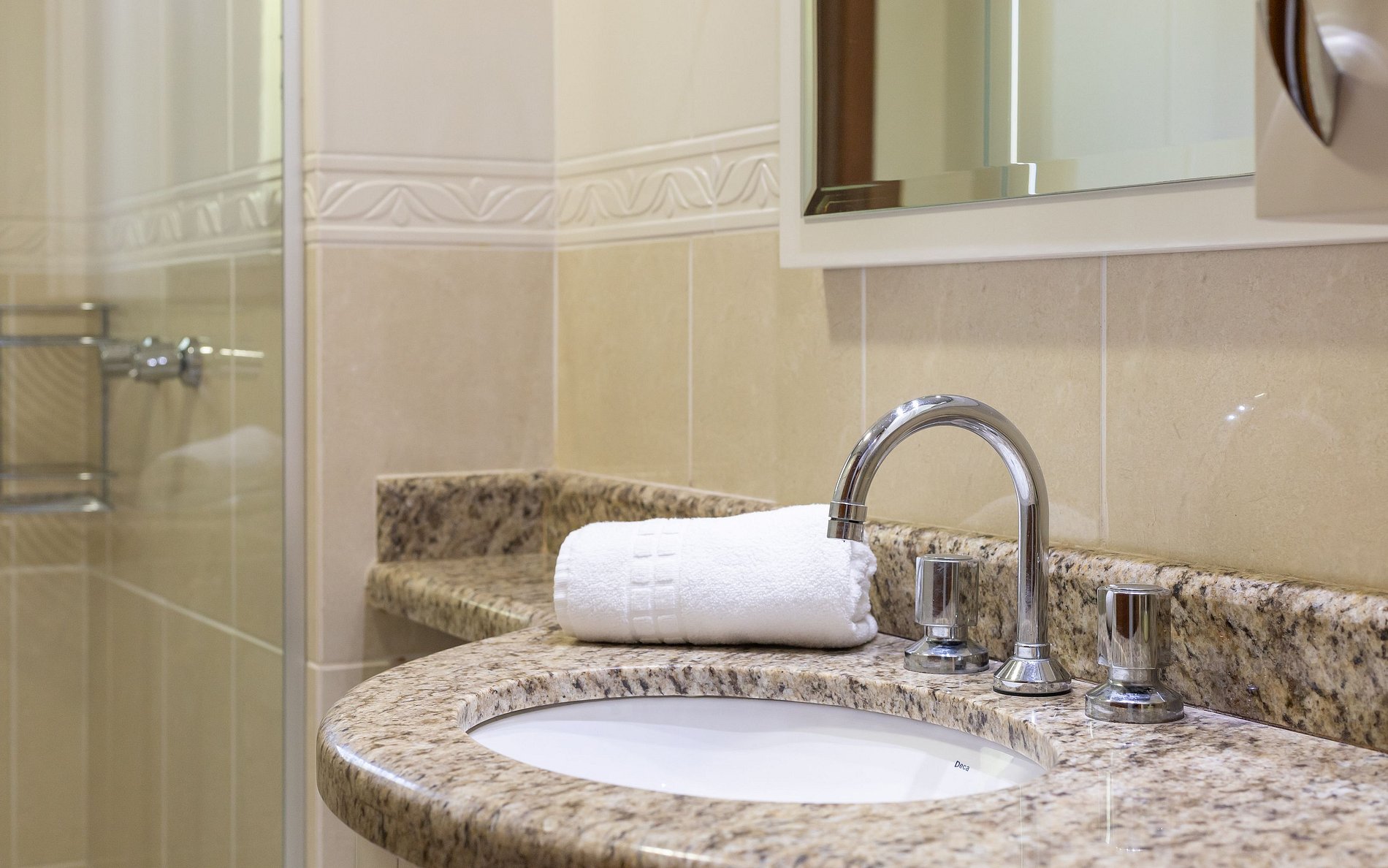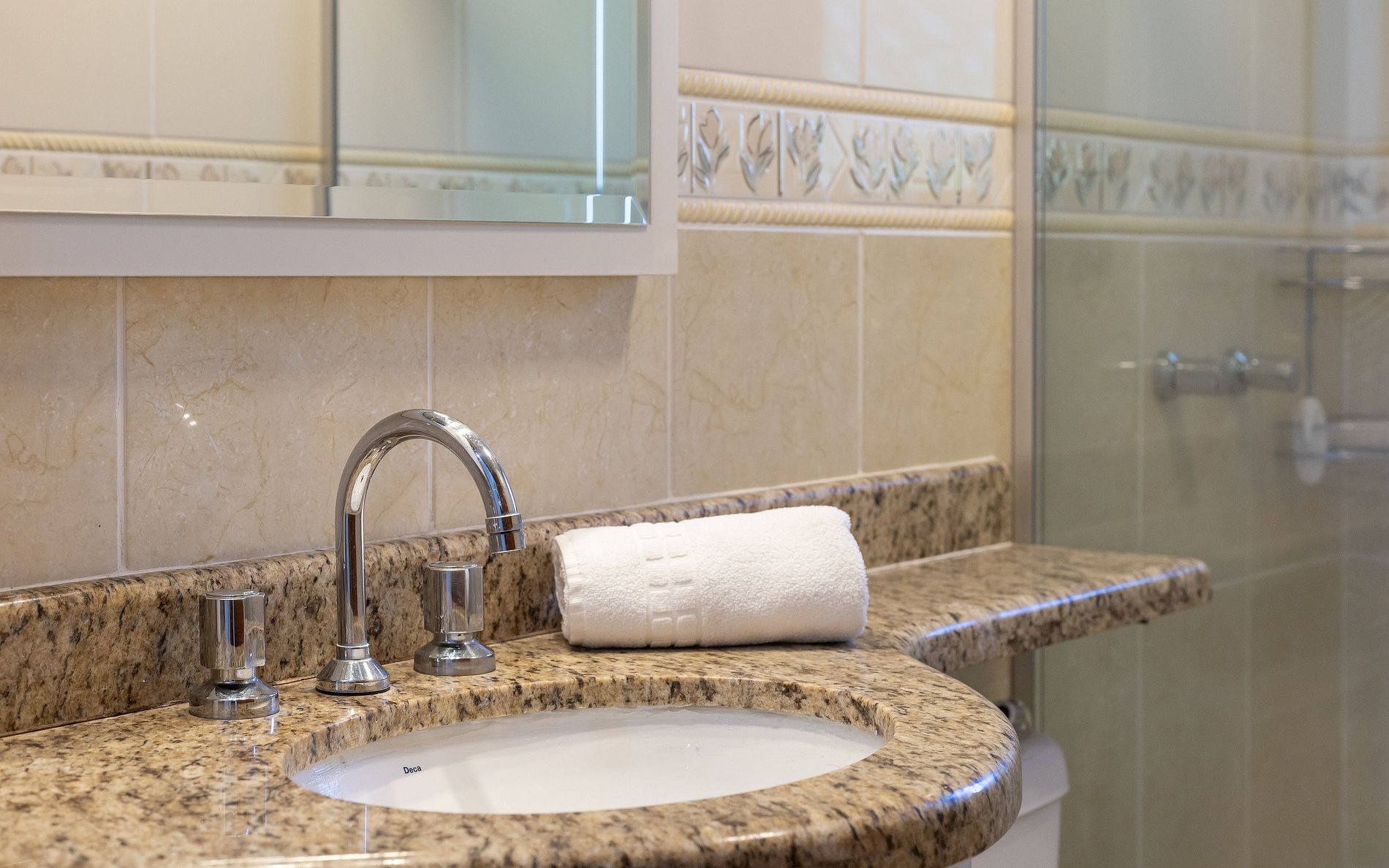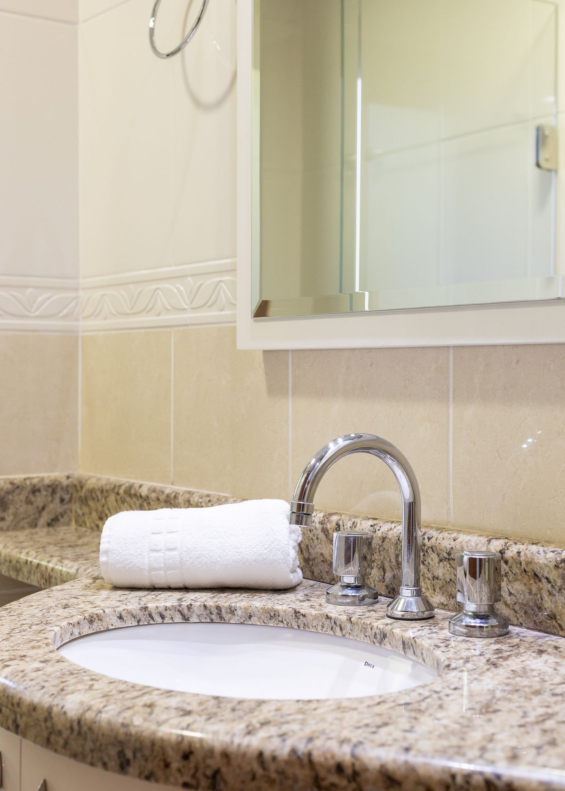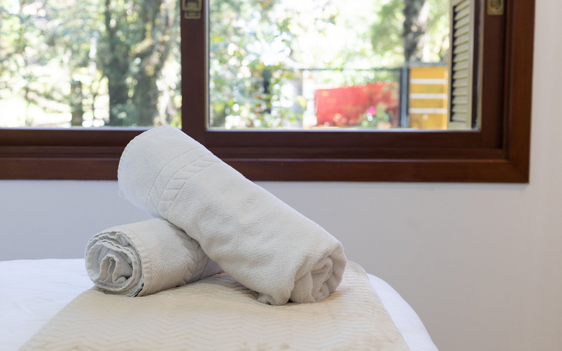 - 1 Toalha de banho por hóspede e toalha de rosto.