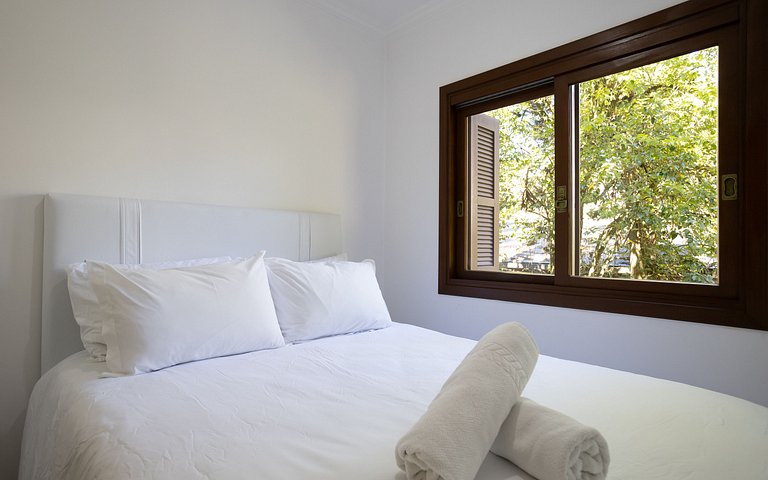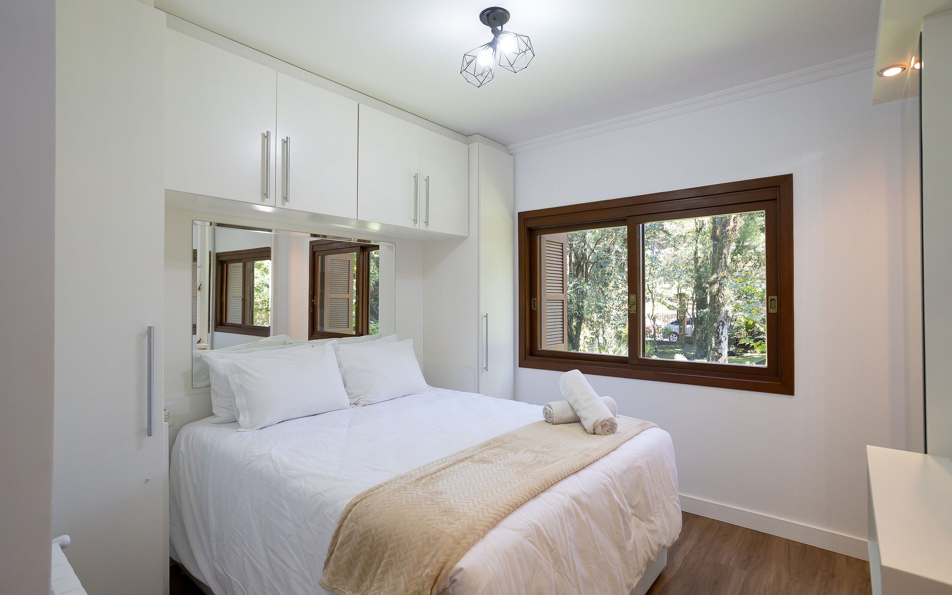 - 1 suíte (cama Queen) + banheiro com secador de cabelo.