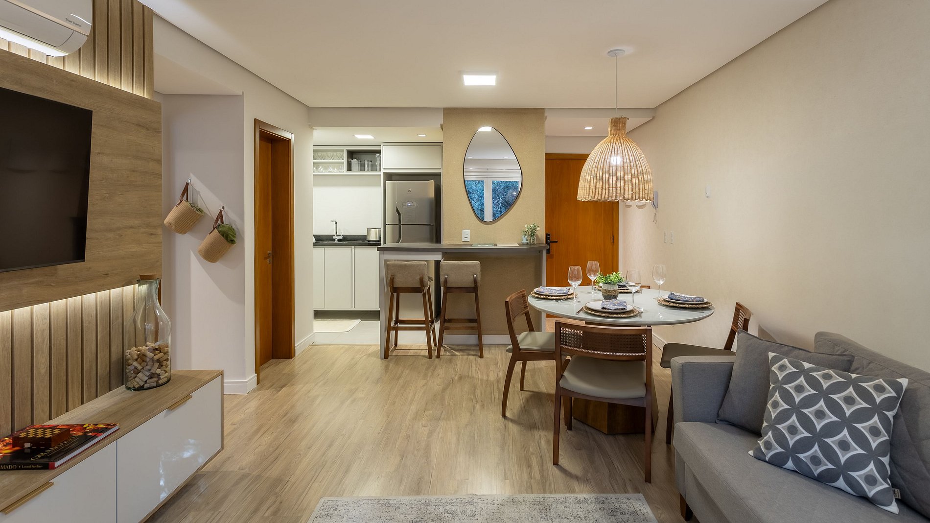- Sala com mesa de jantar para 4 lugares.