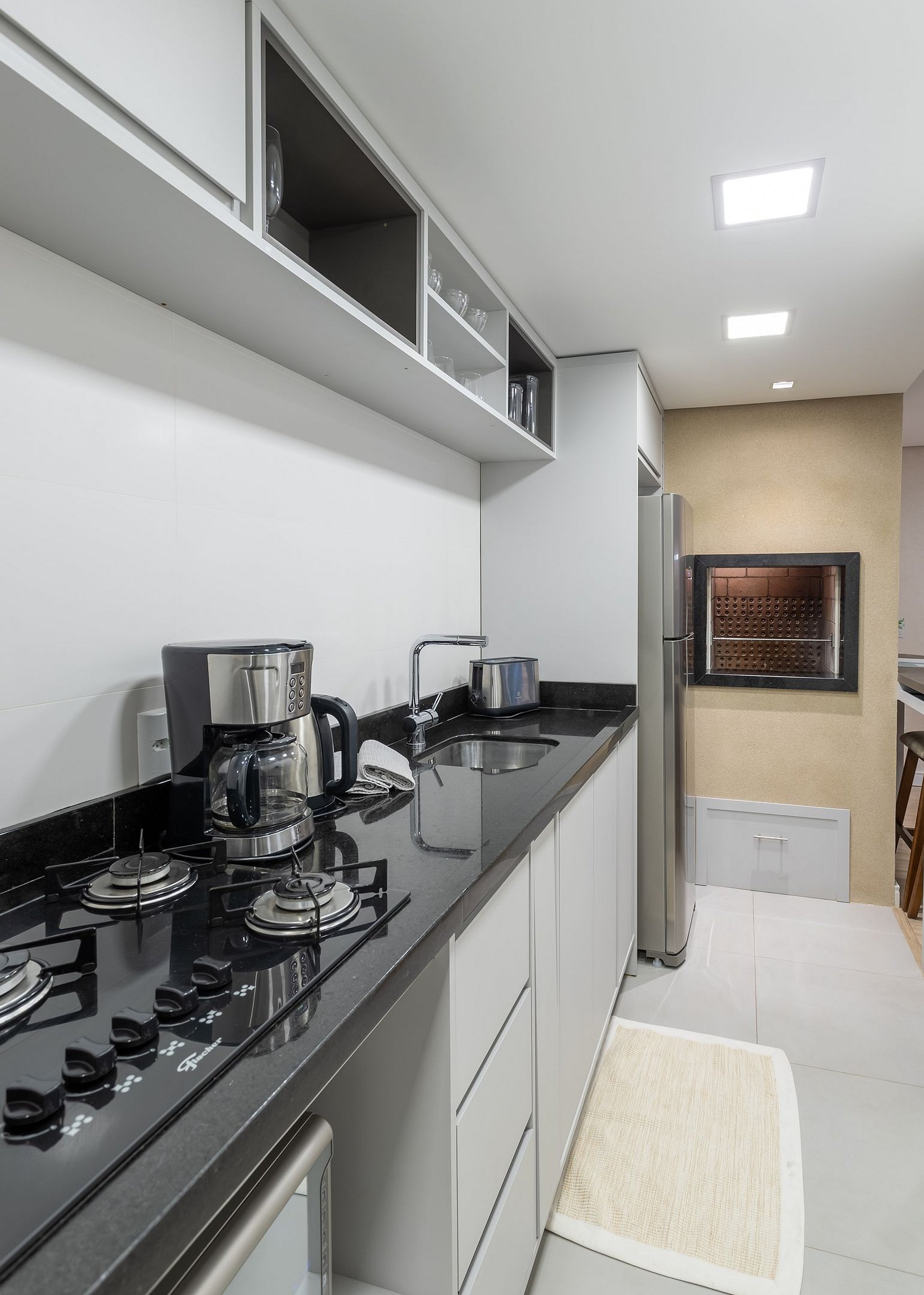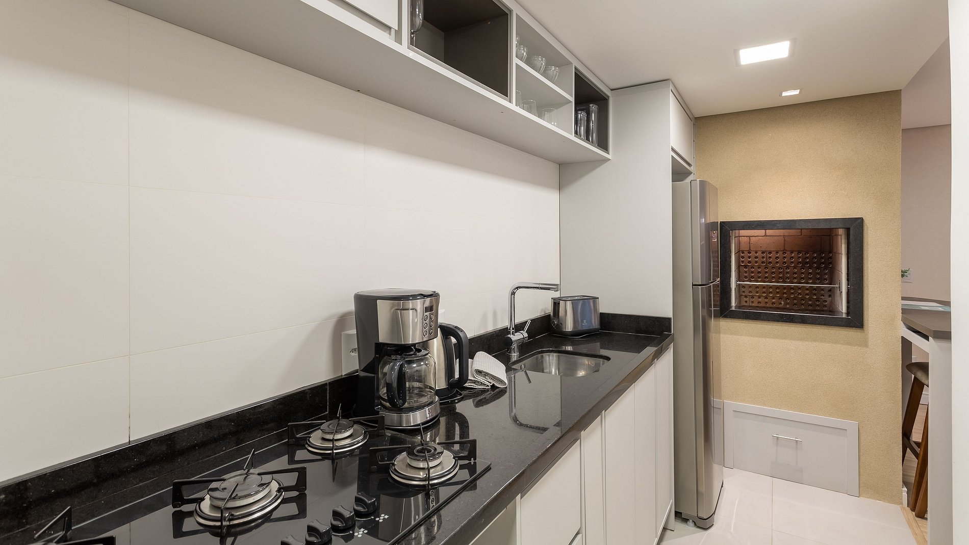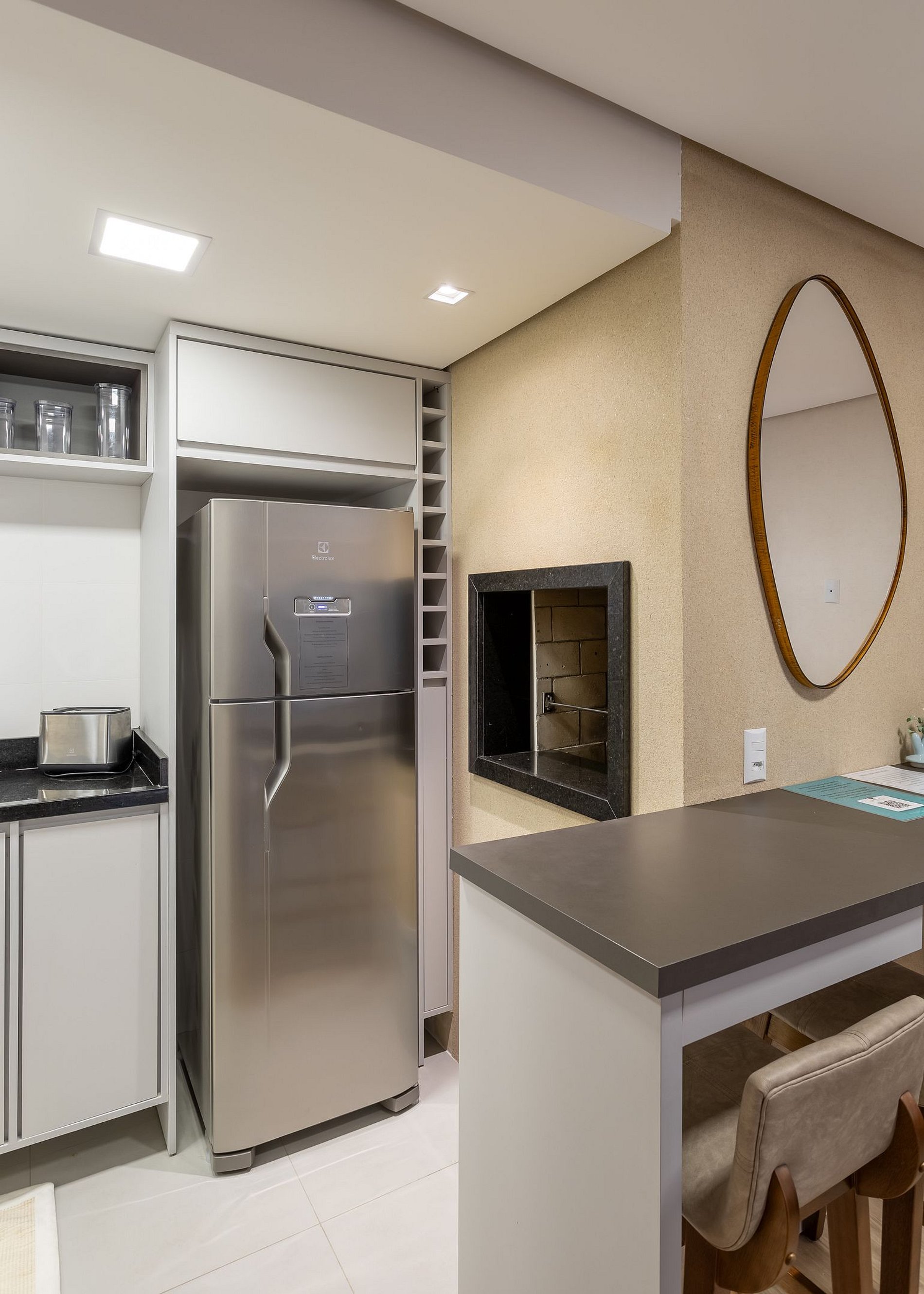 - Churrasqueira e bancada de apoio.