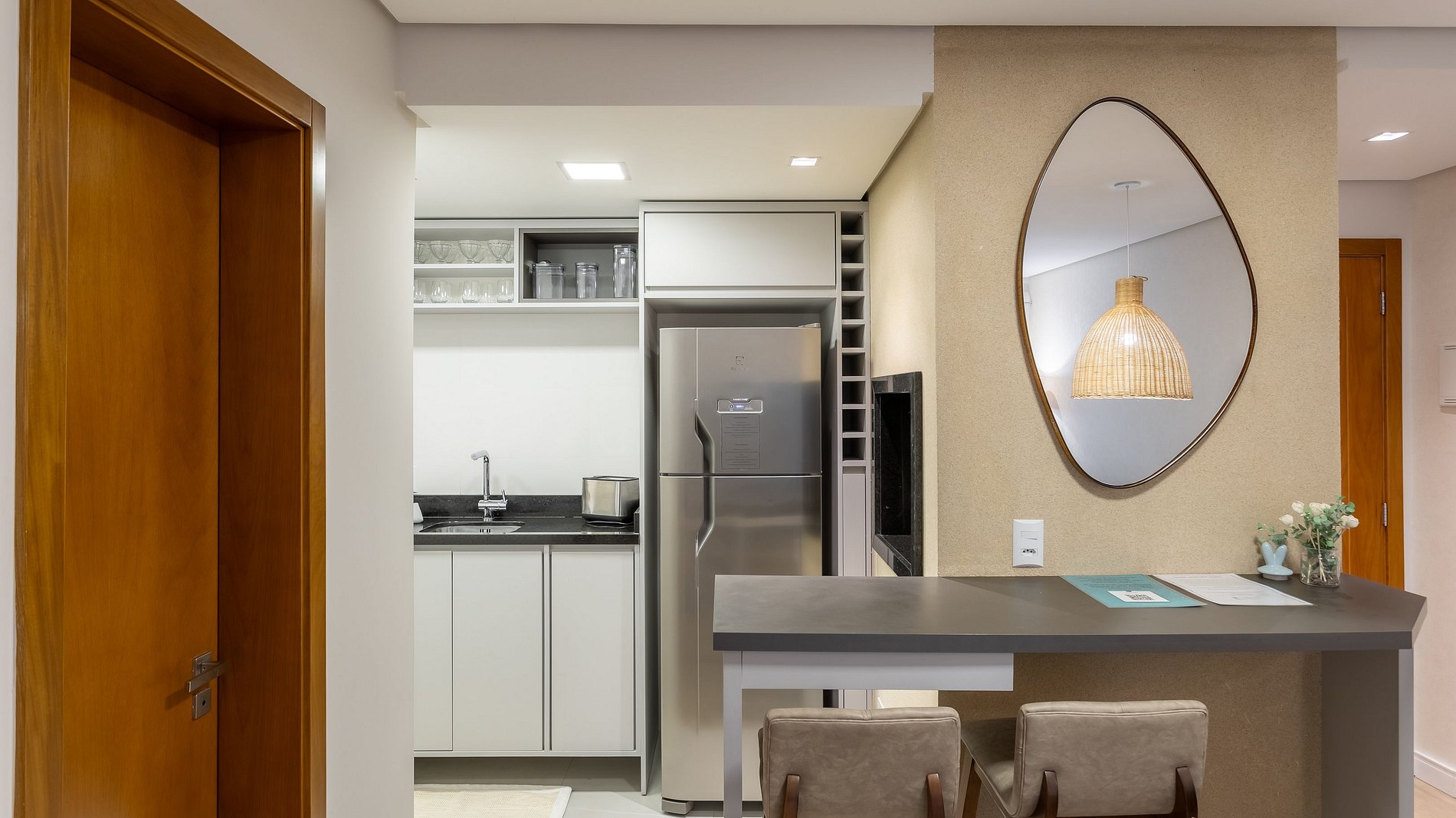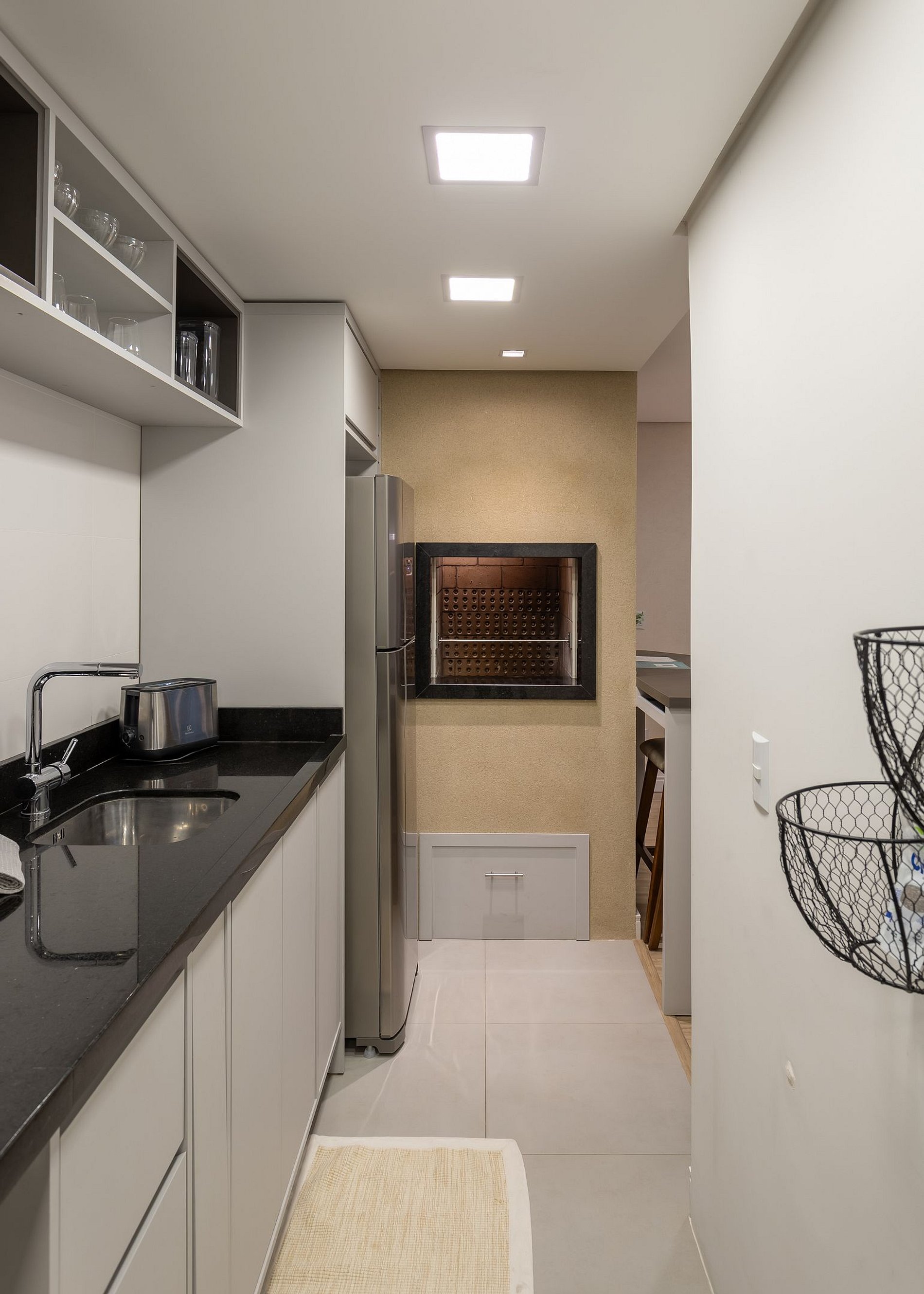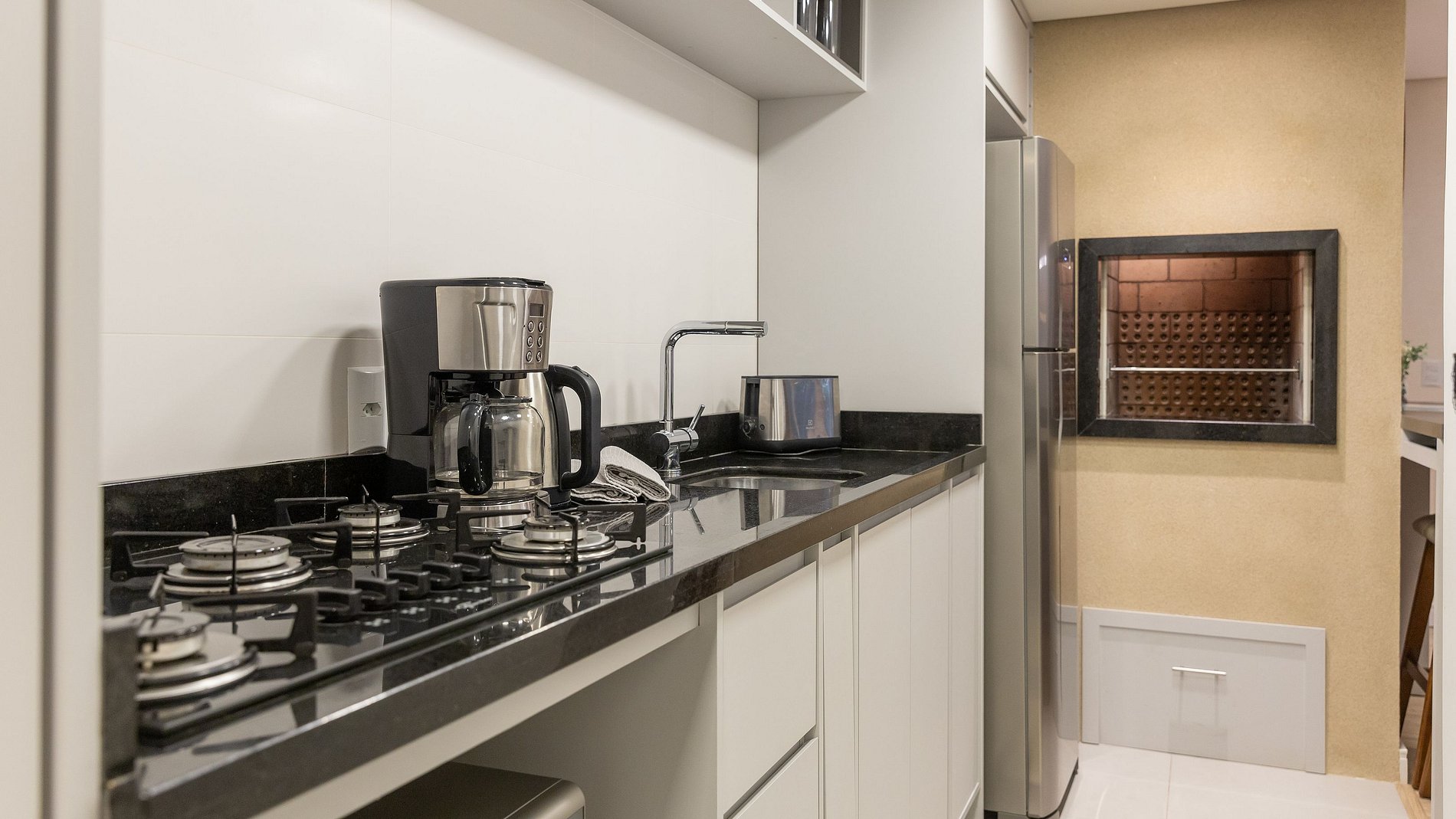 - Churrasqueira e bancada de apoio.
