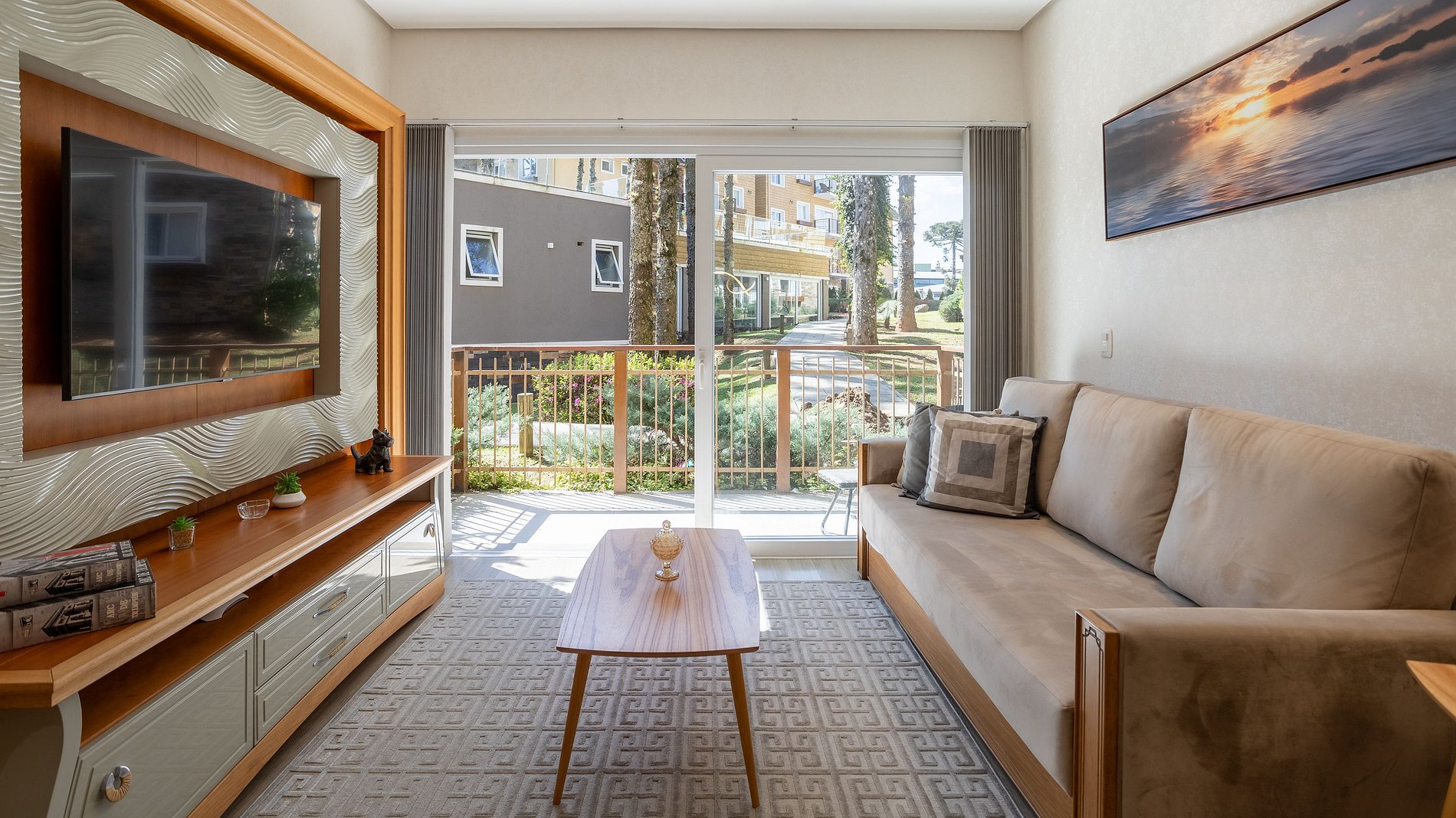 Ao se hospedar em nosso apartamento você poderá sentir a essência do estilo de vida da serra gaúcha que une conforto e conexão com a natureza. O Condomínio Casa de Pedra é muito arborizado e tranquilo, com lindo jardim e piscina aquecida para uso dos hóspedes. Com localização estratégica, fica entre as duas cidades - Gramado e Canela.