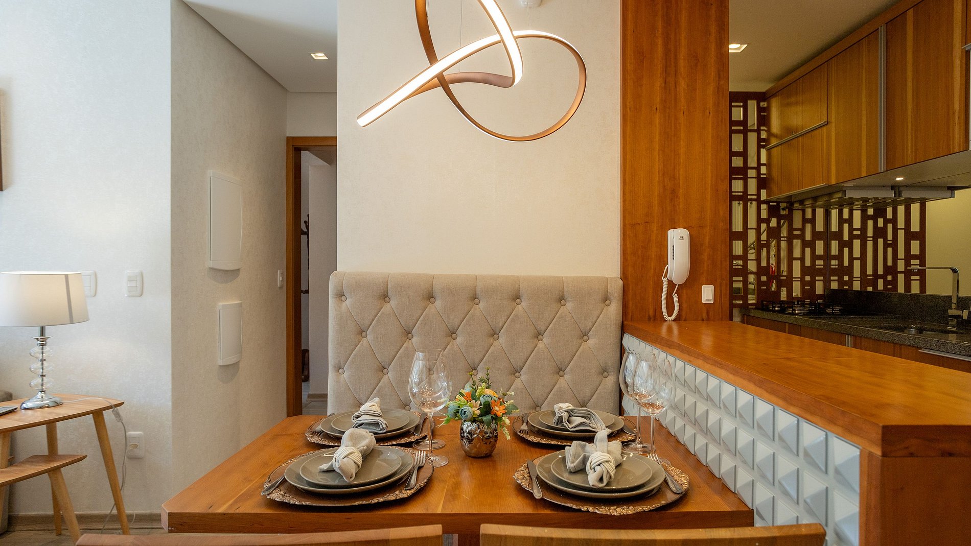O apartamento é finamente mobiliado com Móveis Lustro, disposto da seguinte forma: