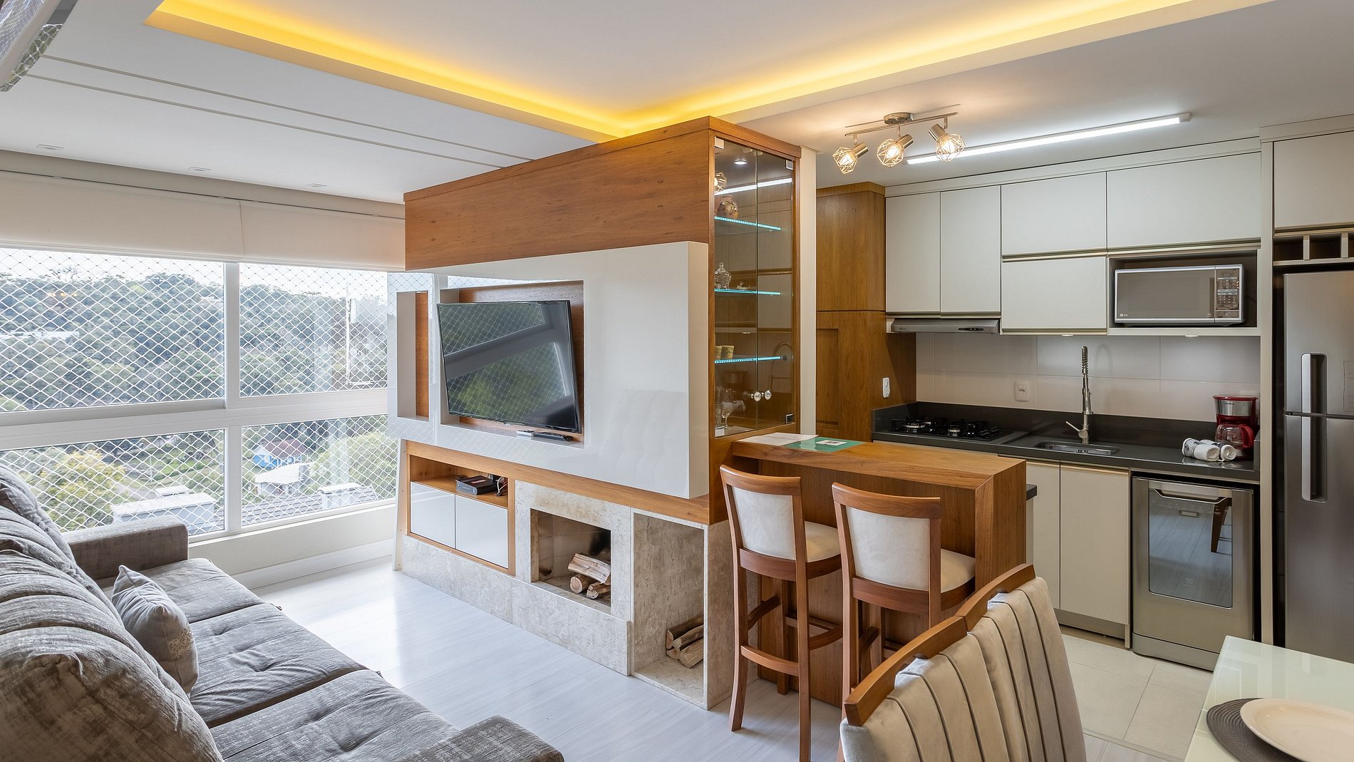 - Sala de jantar e estar integrados com lareira + ar condicionado.