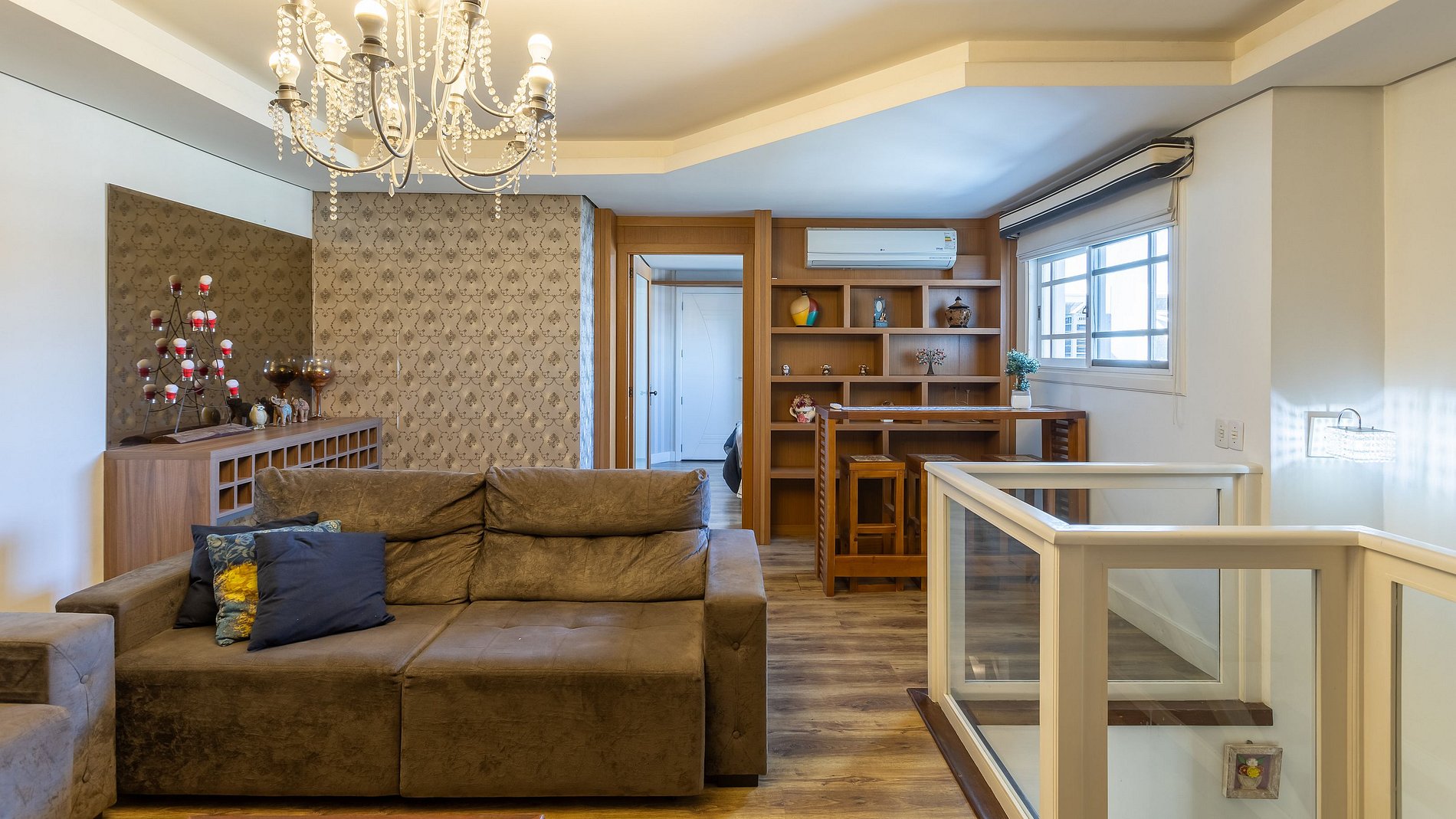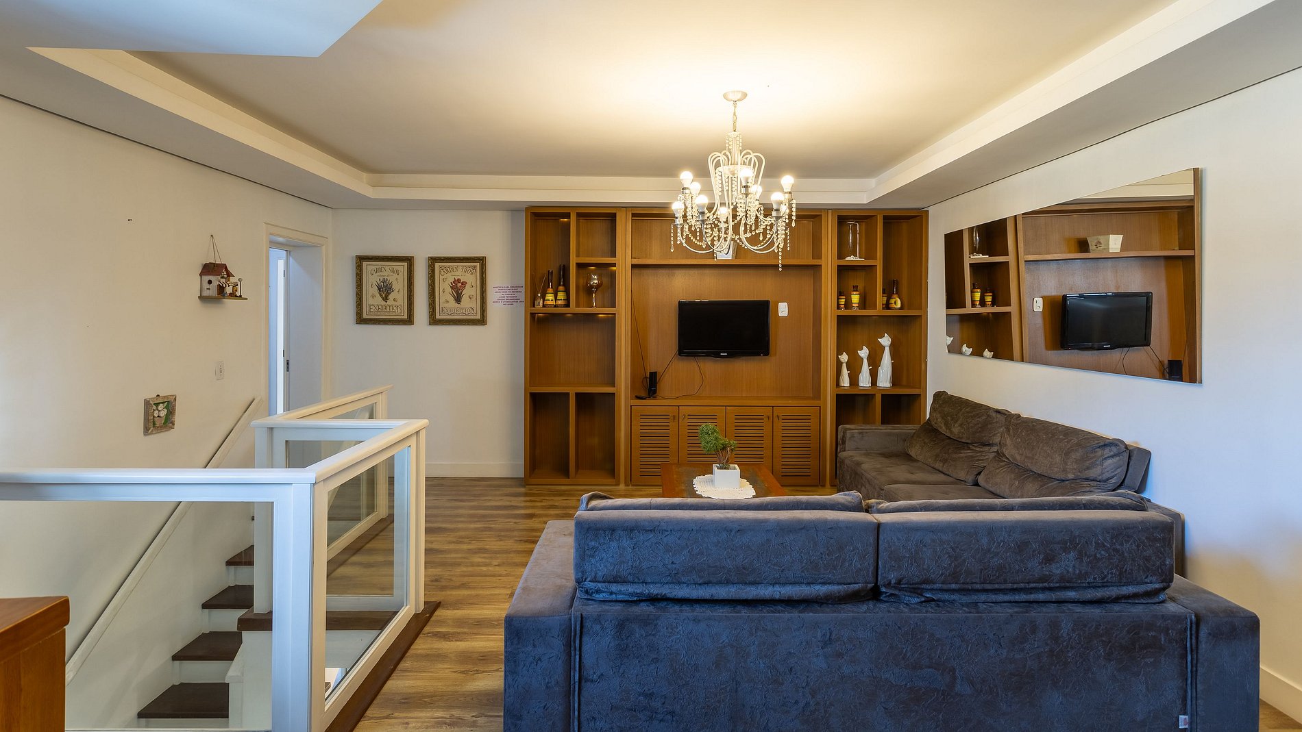 No segundo piso possui, sala de estar com ar condicionado e mais 3 dormitórios.