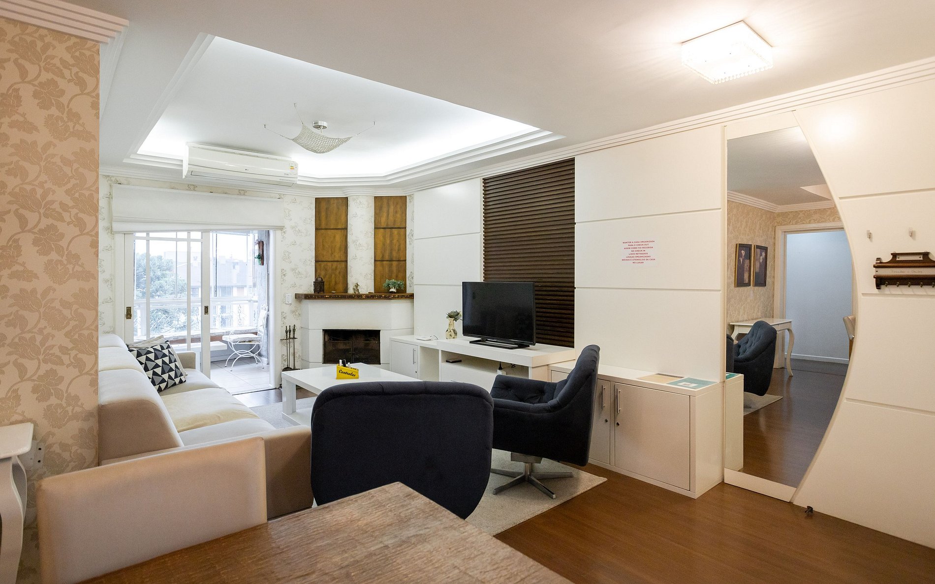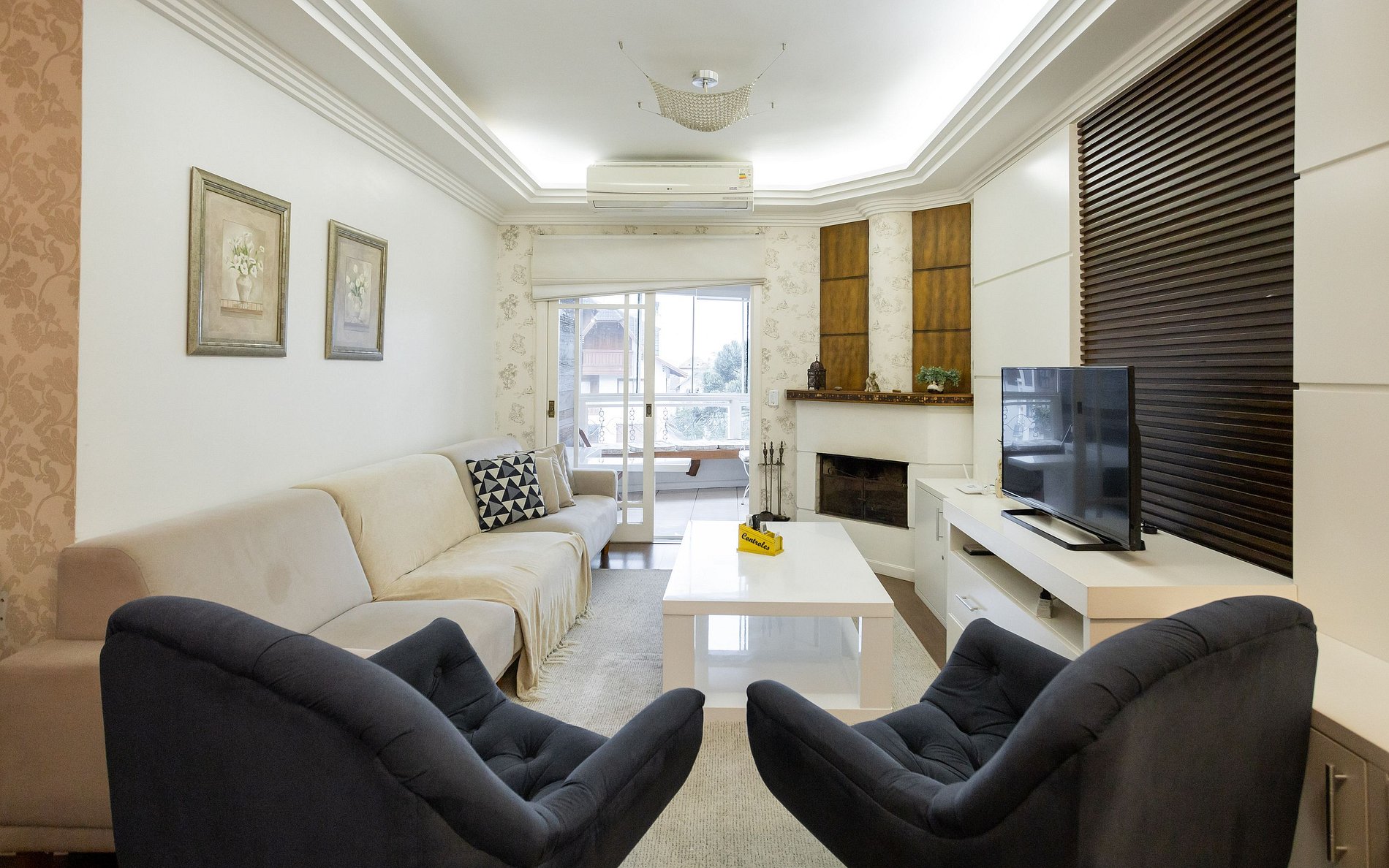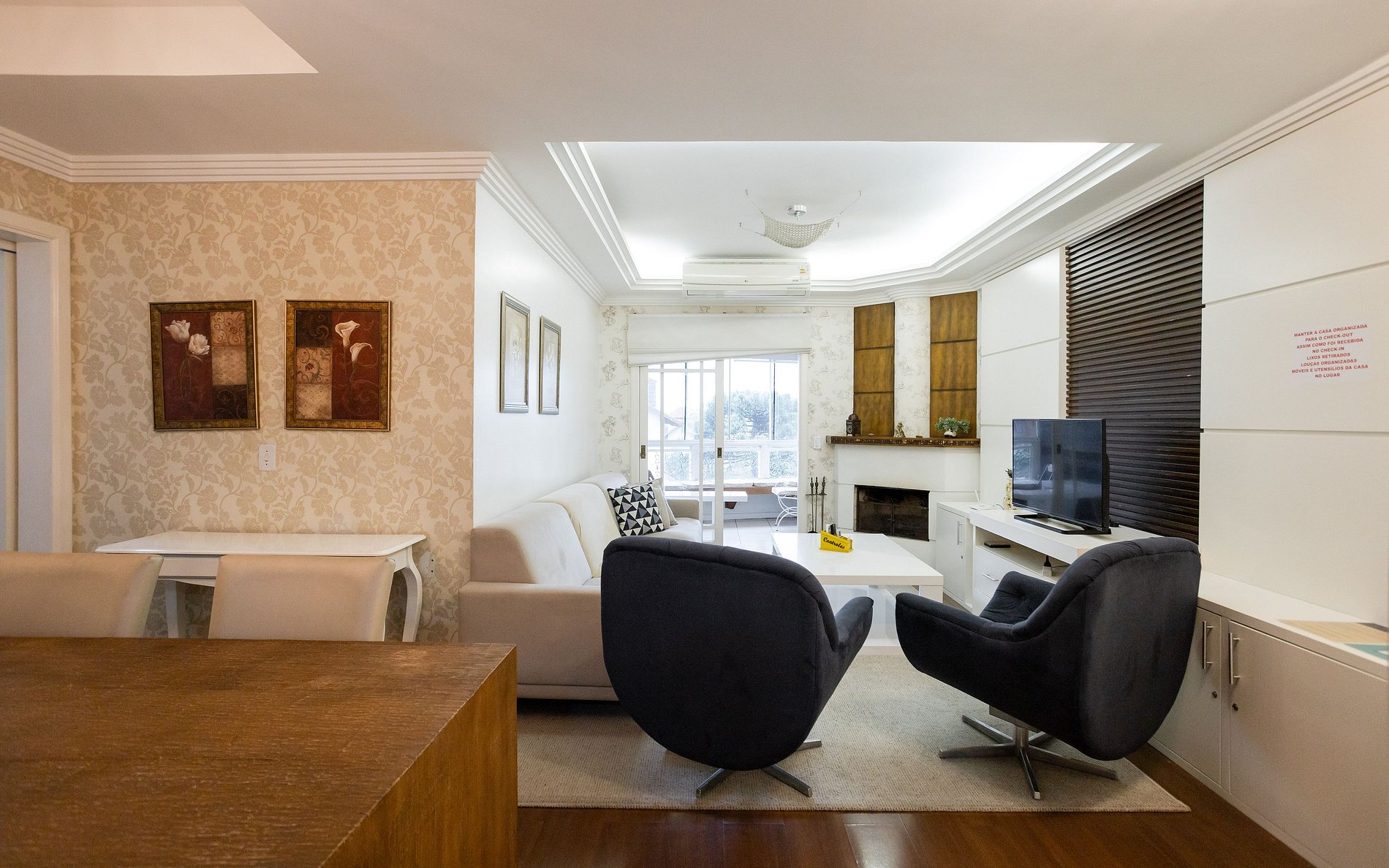 - Sala de jantar e estar com lareira + ar condicionado.
